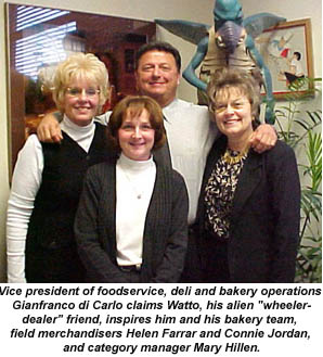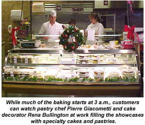 Di Carlo is assisted by a corporate team that oversees the day-to-day operations in the individual bakeries. While he is responsible for seeking out and evaluating products for possible inclusion in the stores, category manager Mary Hillen and field merchandising specialists Helen Farrar and Connie Jordan make sure the bakeries execute the corporate vision. For example, Di Carlo explains, "we have a minimum standard assortment that each store must carry. Certain breads and cakes are basics in the bakeries. But Helen and Connie and their staff of merchandisers constantly evaluate each store to see what additional items they should carry to serve their neighborhoods. It's an ongoing process, because the neighborhoods around the stores keep changing."